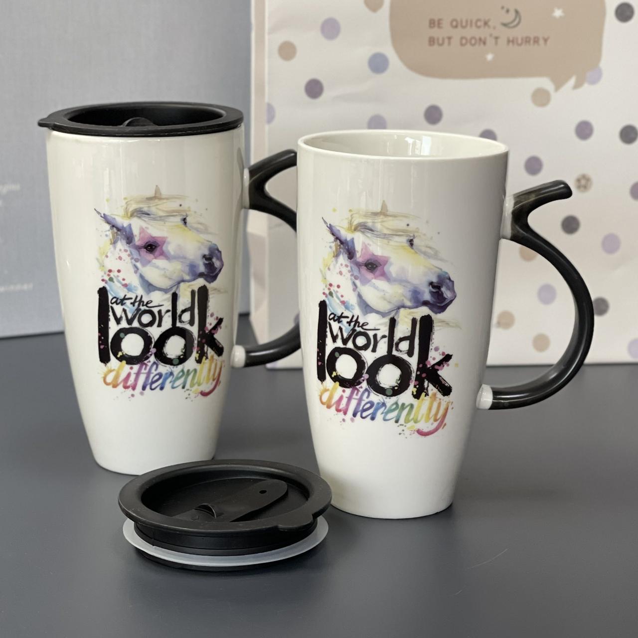 Чашка "Пегас", мікс, Термочашка керамическая с крышкой "Пегас"